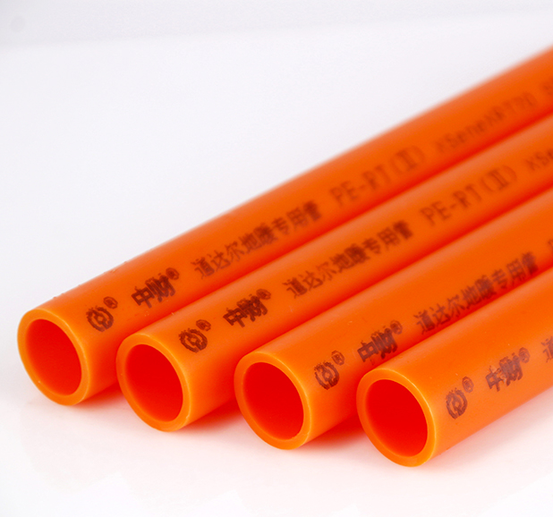 中财道达尔地暖管采用道达尔石化公司进口的Ⅱ型耐热聚乙烯PE-RT专用原料,它是一种采用特殊的分子设计和合成工艺生产的聚乙烯材料,其具有良好的力学性能、蠕变性能、热稳定性、长期静液压性能,抗慢速裂纹增长和抗快速裂纹扩张的性能,是一种新型的地暖管道系统原料。