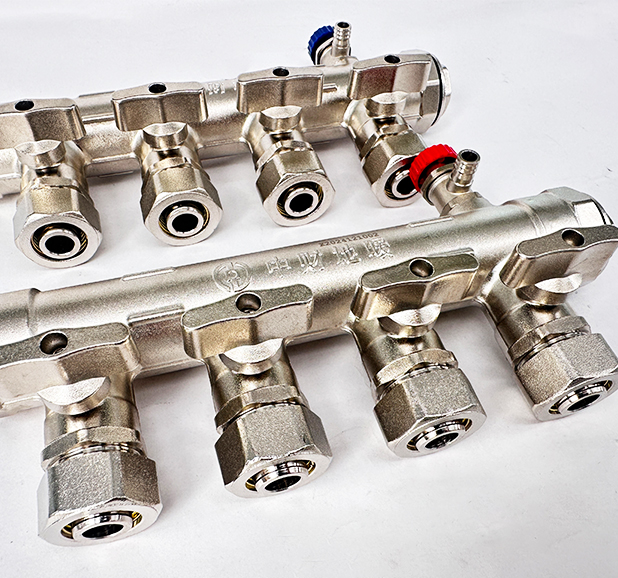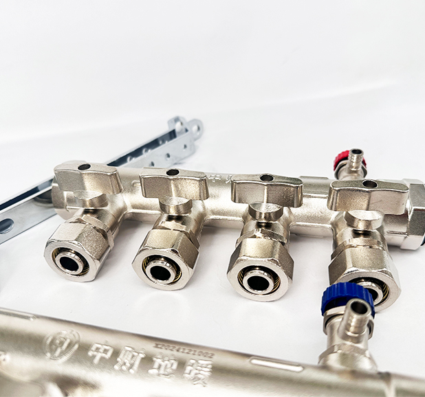 功能性分集水器,具备普通双球阀分集水器的所有功能;360°自由旋转排气阀,方便施工和维护;球阀内全部为铜球,保证长期使用效果;密封圈为三元乙丙密封圈,保证使用寿命;球芯垫片为耐高温聚四氟乙烯材质,保证使用安全和使用寿命。